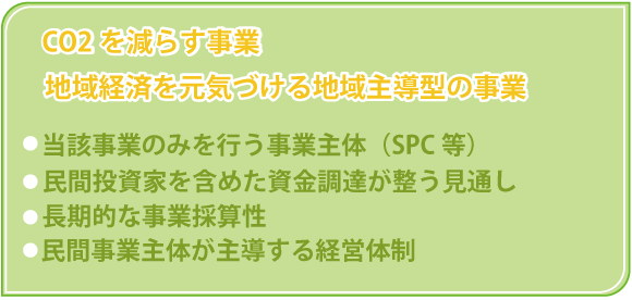 グリーンファンドは「CO2削減」+「地域活性化」に貢献するプロジェクトに出資しています。